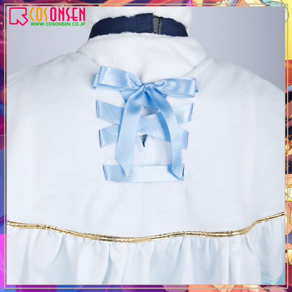 ジャガード生地で製作しています。フロントの蝶結びはマジックテープで留めます。後ろにリボンの缔まり具合を好みで調整できます。マントに特殊な模様がプリントされていて、原作を忠実に再現いたしました。