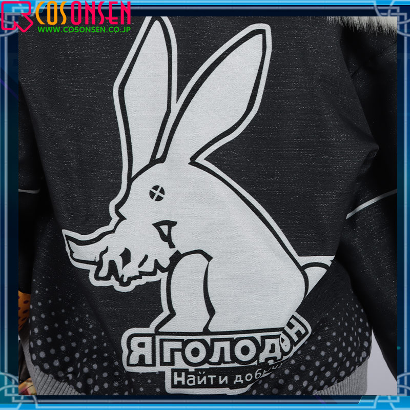 シルク生地で制作しています。襟はファー付きのデザインで、フロントにファスナーが施されています。両サイドにポケットが飾っており、背中にうさぎの模様が綺麗にプリントされて再現度が高いです。