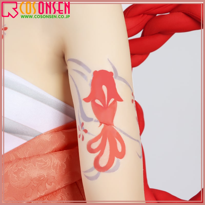 浴衣、インナー、ハーフパンツ、飾り物(髪飾り4点、首飾り、手袋、リボン、帯、腰飾り、巾着袋、蝶結び、膝当て、レッグカバー、腿飾り、ソックス2点、ガーゼ、タトゥーシール、紐4点、神の目)