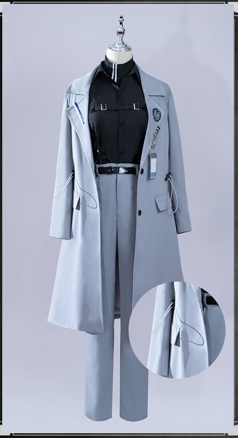 コート、シャツ、インナー、パンツ、飾り物(耳飾り、ベルト3点、名札)