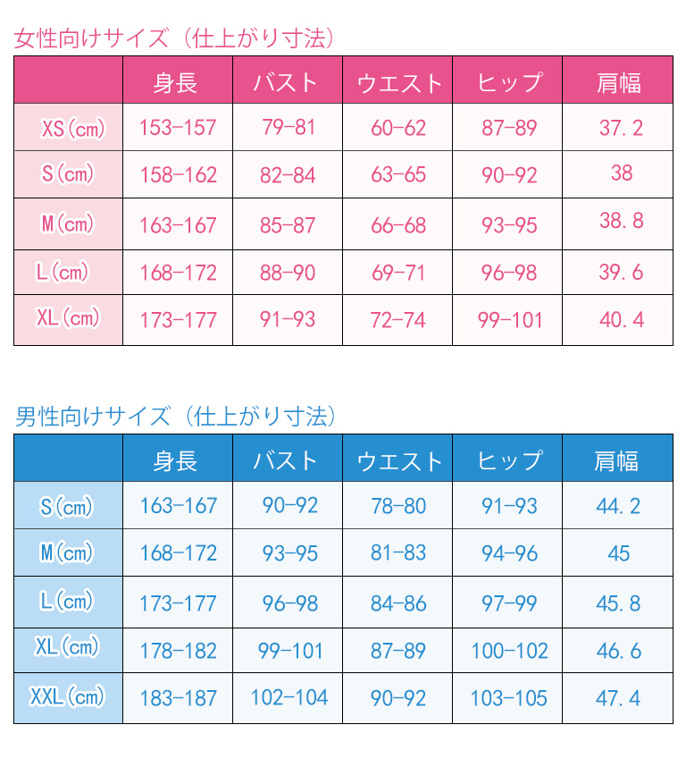 オーダー 女性L 女性M 女性S 女性XS 男性XXL 男性XL 男性L 男性M 男性S 女性XL