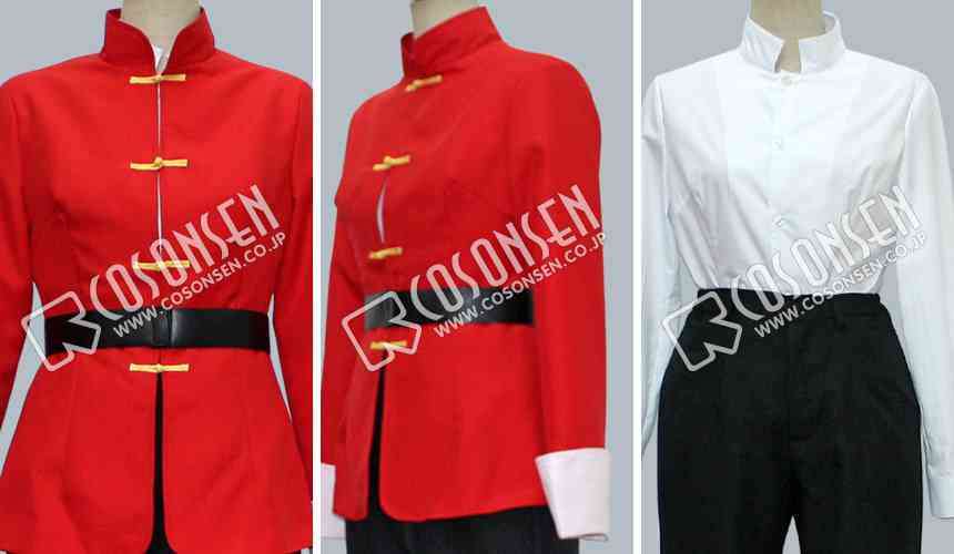 赤を基調したボリ混紡生地で製作します。黄色のボタン結びを付きます。黒のベルトを付きます。一着あれば、らんま1/2の主人公になるような気がします。