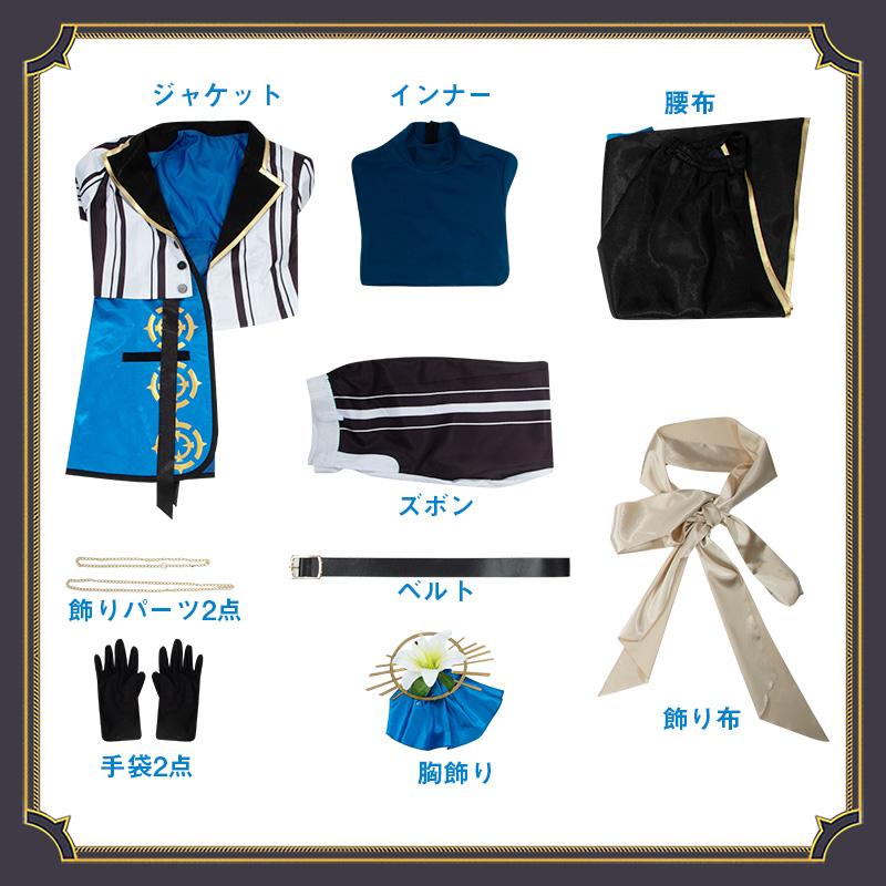 ジャケット、インナー、ズボン、飾り物(飾り布、胸飾り、飾りパーツ2点、腰布、ベルト、手袋2点)