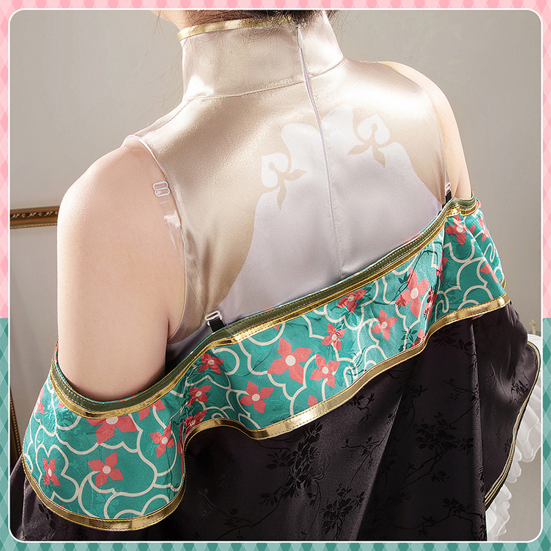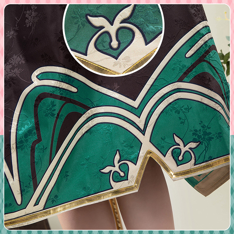 ジャガード生地で製作しています。黒と緑を基調に、中国風の要素と金色の縁取りが施された繊細で優雅なデザインは、古典的な魅力と現代的なエレガンスを融合しています。