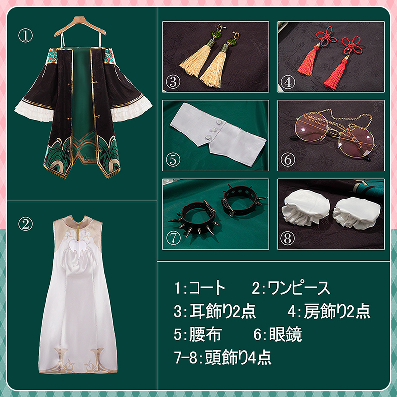 コート、ワンピース、飾り物(眼鏡、耳飾り2点、頭飾り4点、房飾り2点、腰布)