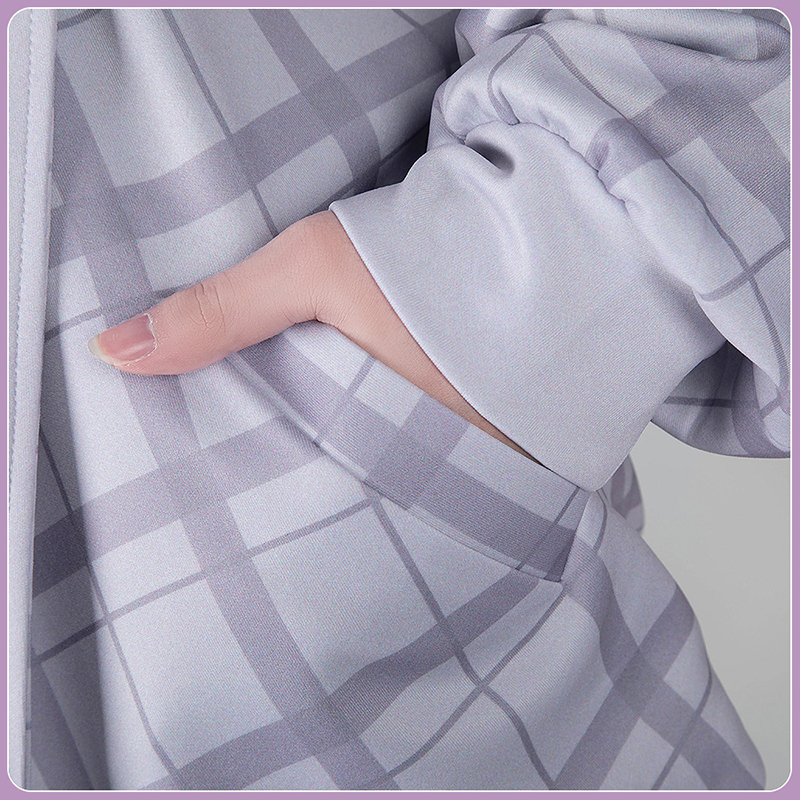 ダンボールニット生地で製作しています。エレガントなコートで、格子縞がプリントされて再現度が高いです。
