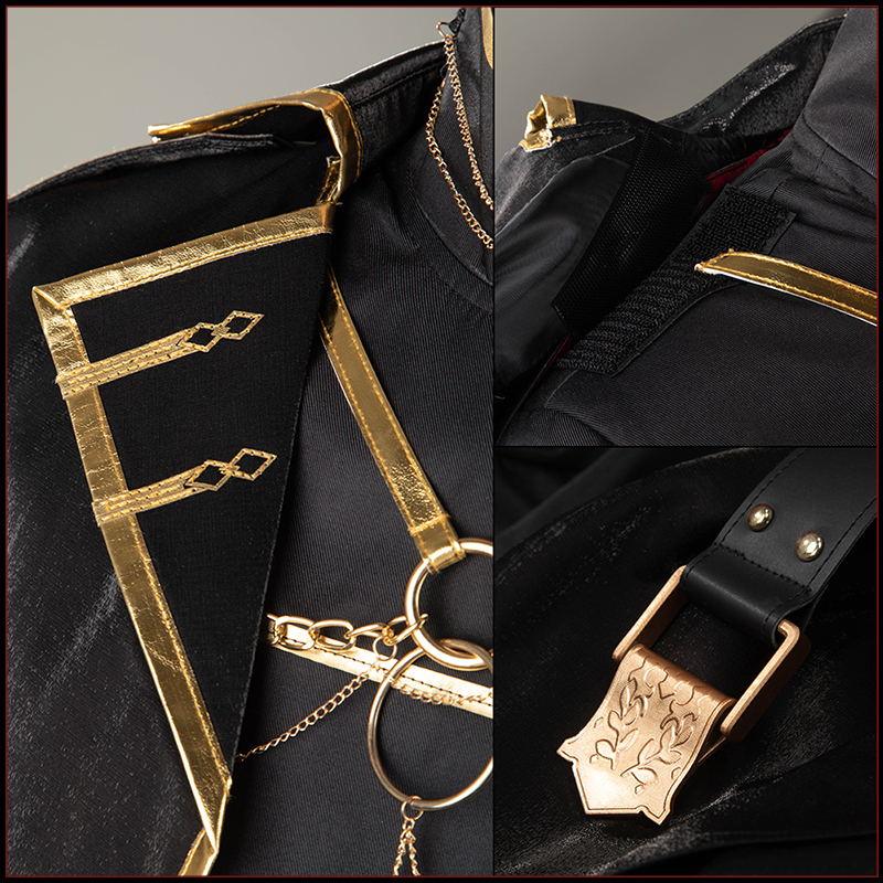 マント、コート、シャツ、パンツ、飾り物(胸飾り2点、手袋2点、腰布、ウエストチェーン、ベルト4点、腿飾り、帽子)