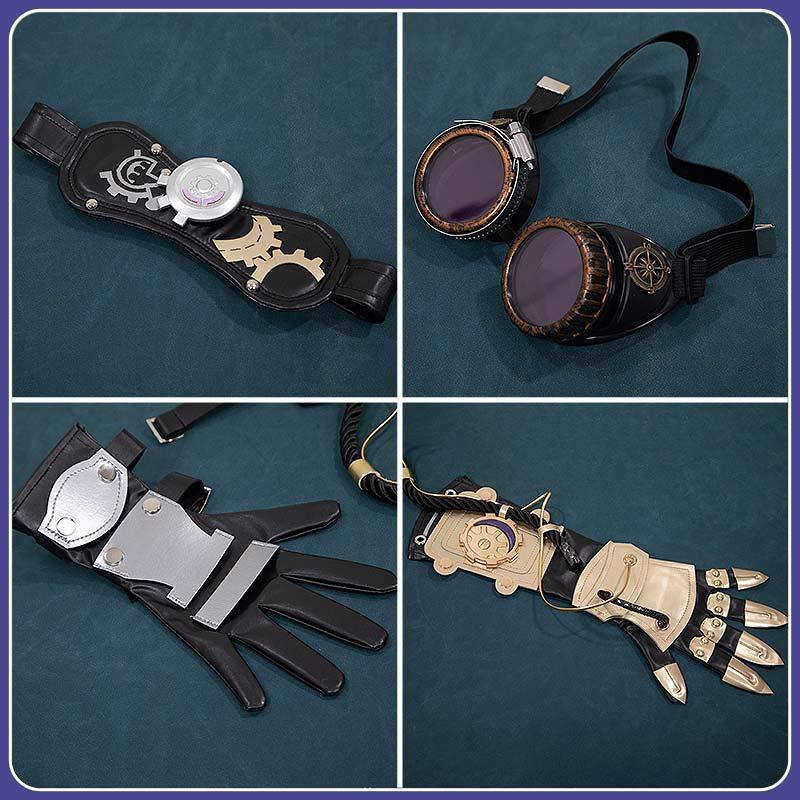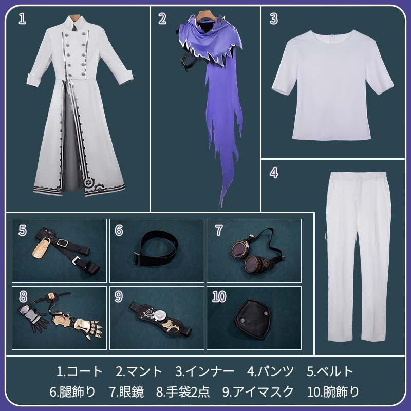 コート、マント、インナー、パンツ、飾り物(ベルト、腿飾り、メガネ、手袋2点、アイマスク、腕飾り)