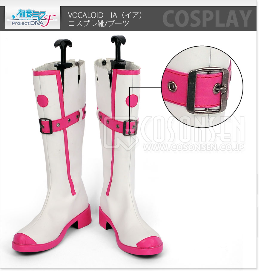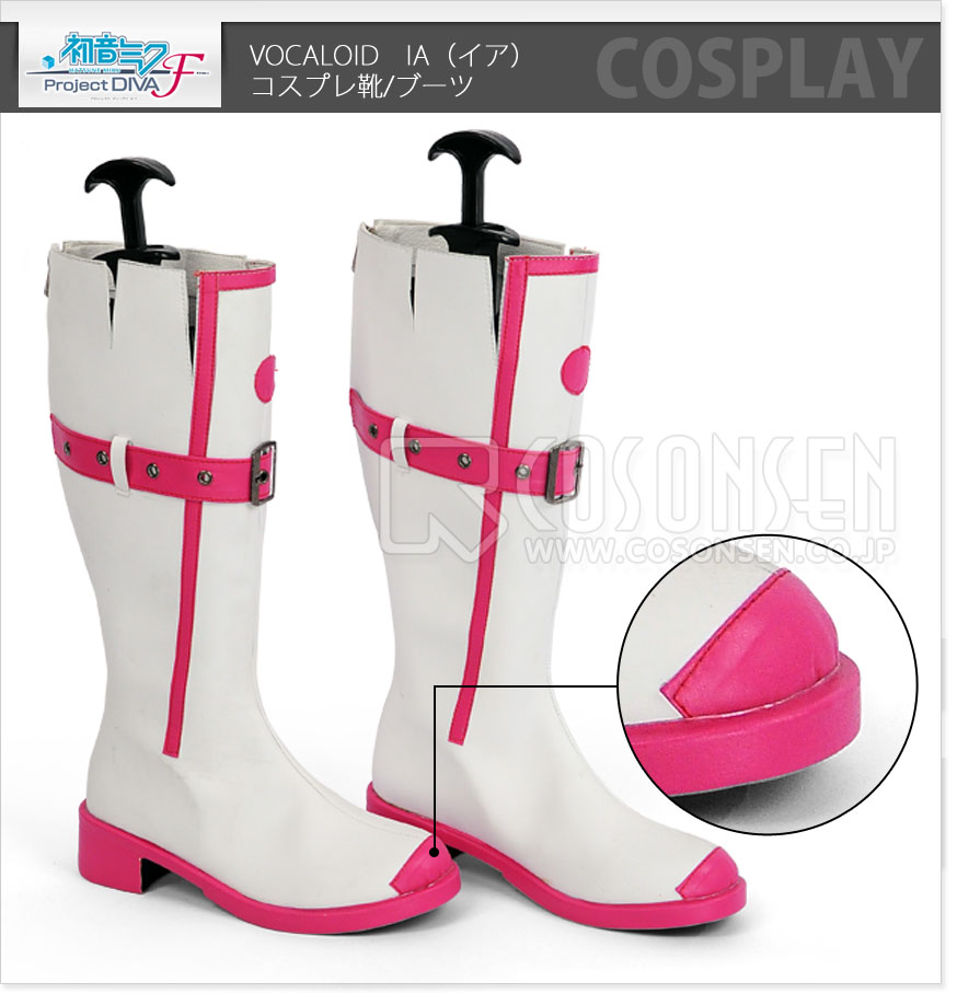 VOCALOID3 IA(イア) コスプレ靴/ブーツ 「素材」素材:合皮 「ヒール」低ヒール 「筒丈」 28-32cm 「脹脛周り」34-42cm ヒール部分の素材は木を使用、底は厚底でも滑りにくい深い溝が刻まれているラバーを使用しております。 コスプレ専用にデザインされている IA(イア) コスプレ靴です。 コスプレイヤーに適合する本格的なコスプレ専用ブーツ。