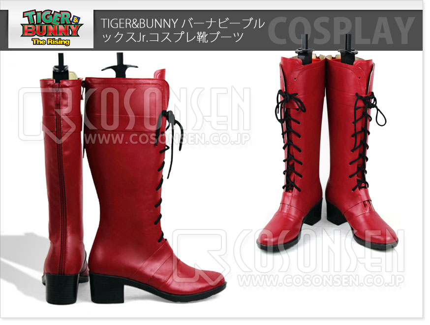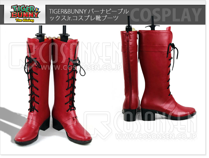 TIGER&BUNNY バーナビーブルックスJr. コスプレ靴/ブーツ 「素材」素材:合皮 「ヒール」ハイヒール  「筒丈」 28CM-35CM 「脹脛周り」35-38CM ヒール部分の素材は木を使用、底は厚底でも滑りにくい深い溝が刻まれているラバーを使用しております。 コスプレ専用にデザインされている バーナビーブルックスJr. コスプレ靴です。 コスプレイヤーに適合する本格的なコスプレ専用ブーツ。