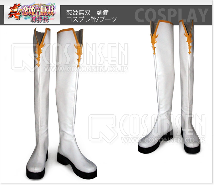 恋姫無双 劉備 コスプレ靴/ブーツ 「素材」素材:合皮 「ヒール」ハイヒール  「筒丈」 40CM-50M 「脹脛周り」35-40CM ヒール部分の素材は木を使用、底は厚底でも滑りにくい深い溝が刻まれているラバーを使用しております。 コスプレ専用にデザインされている劉備コスプレ靴です。 コスプレイヤーに適合する本格的なコスプレ専用ブーツ。