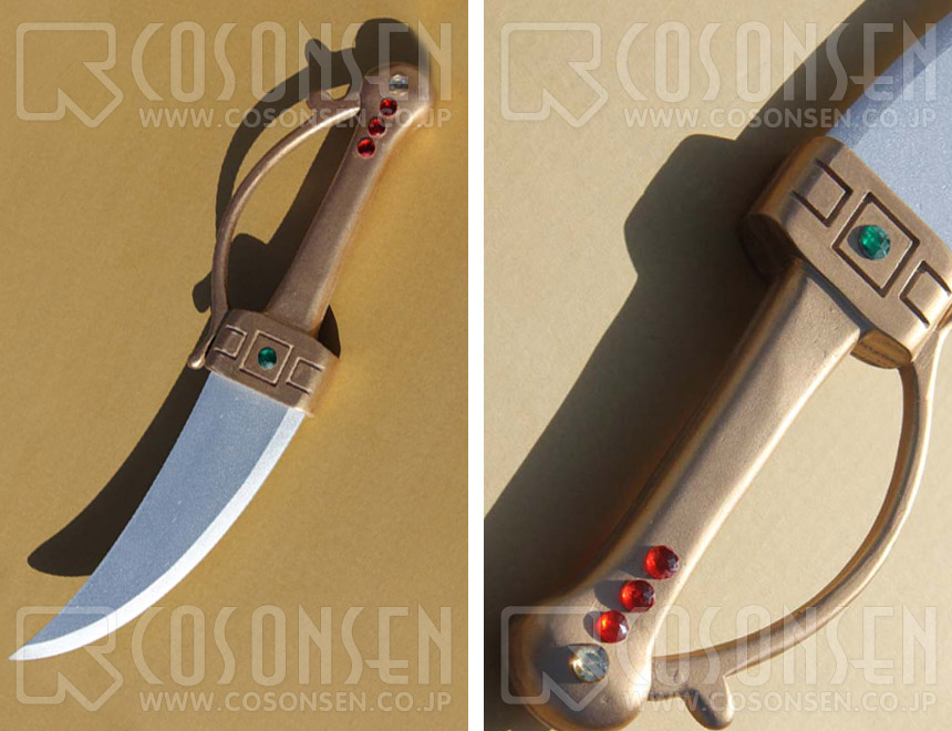 ★アリババが身につける護身用のナイフです。柄にはめる赤と緑の宝石は王家の血が流れるアリババの身分を証明しています。